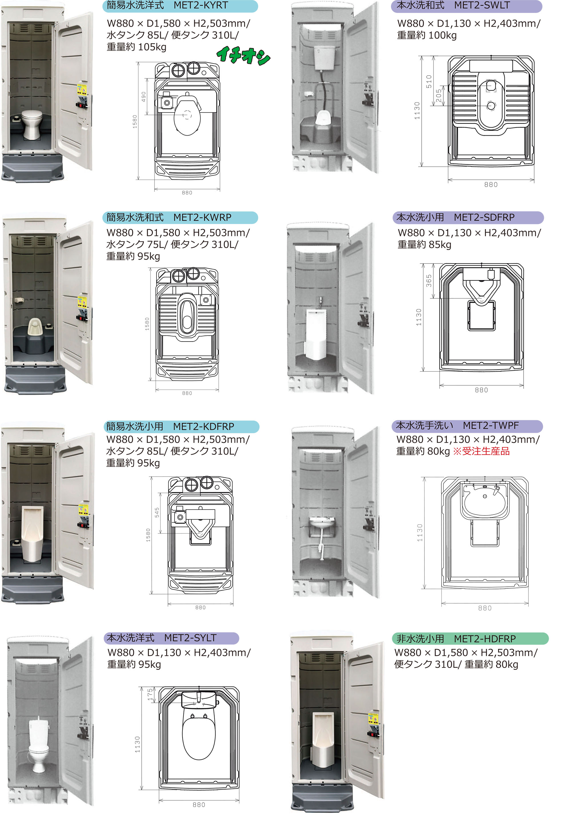 | タンク容量 | 水タンク: 約85L(簡易水洗洋式) 約75L(簡易水洗和式) 便タンク: 約310L |