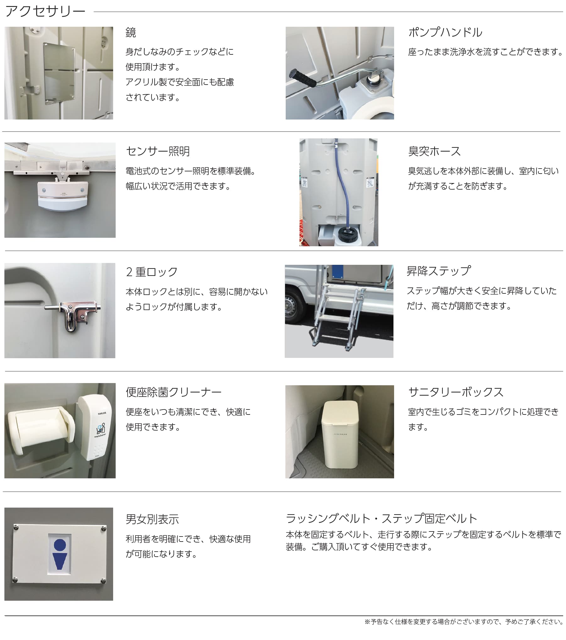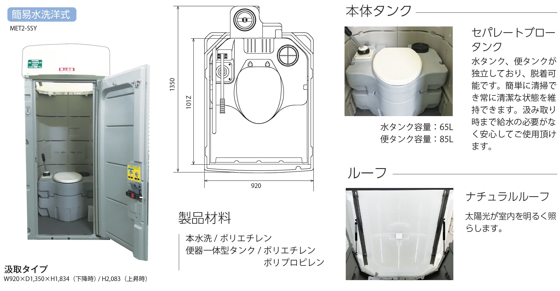 | タンク容量 | 水タンク: 約65L ⁄ 便タンク: 約85L |