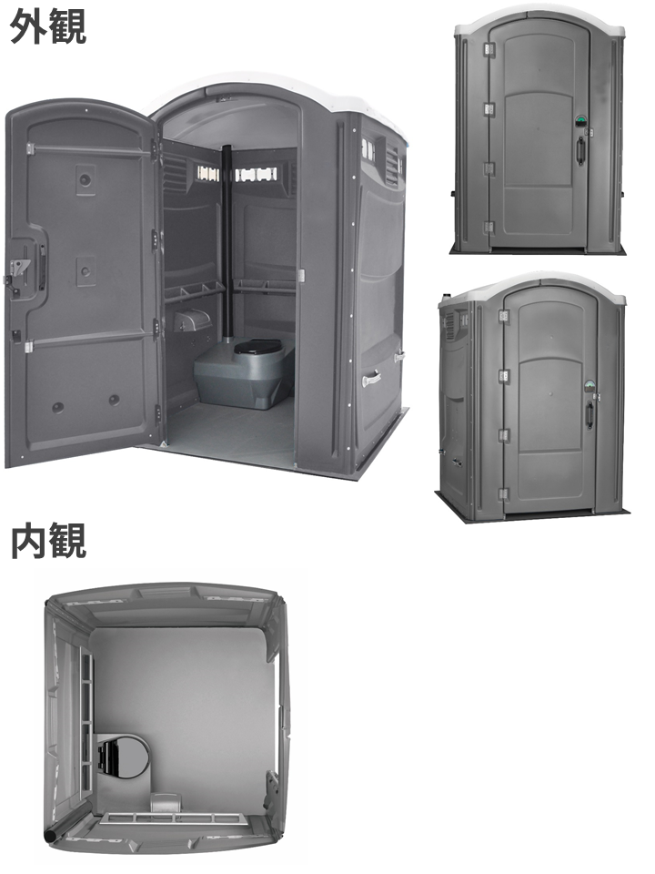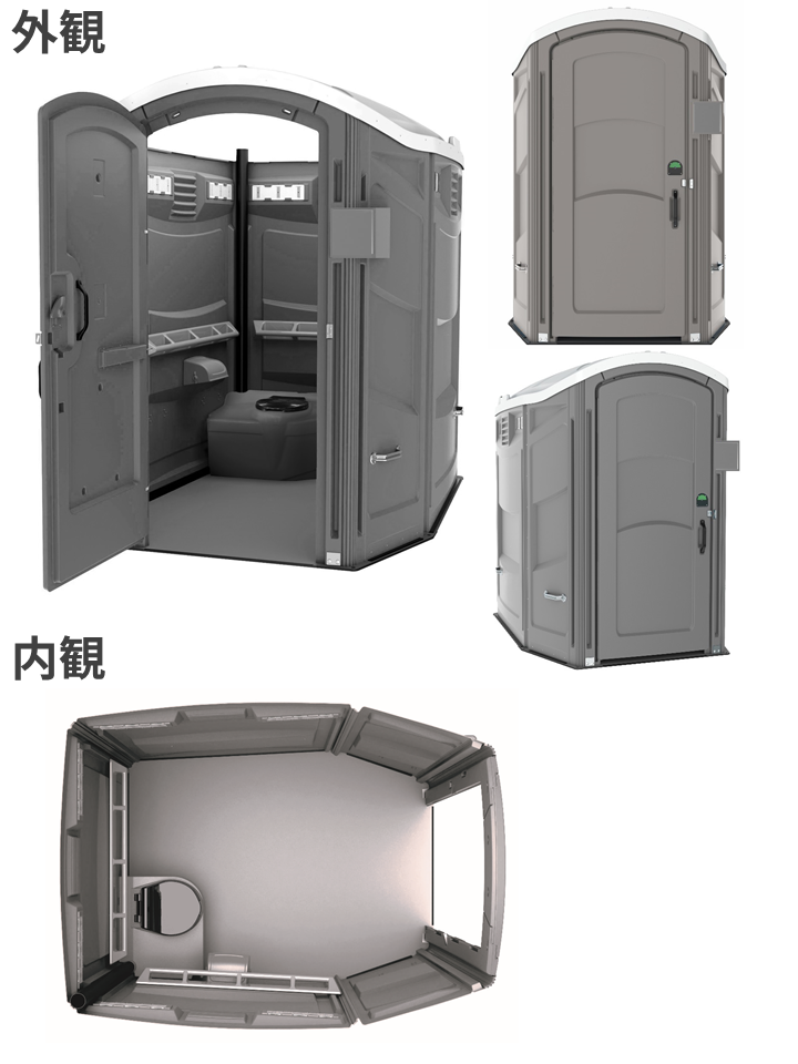 2種類のサイズにそれぞれ簡易水洗式、非水洗式をお選び頂けます。臭気逃し部や簡易水洗時のタンクなど、利用者の目線に立った改善を加えた製品です。